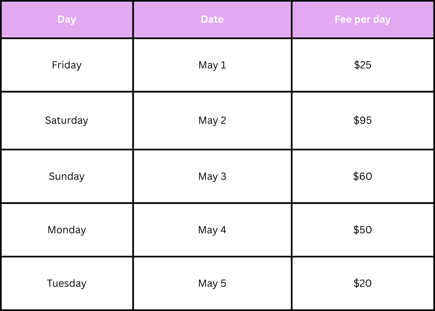 Friday: $5